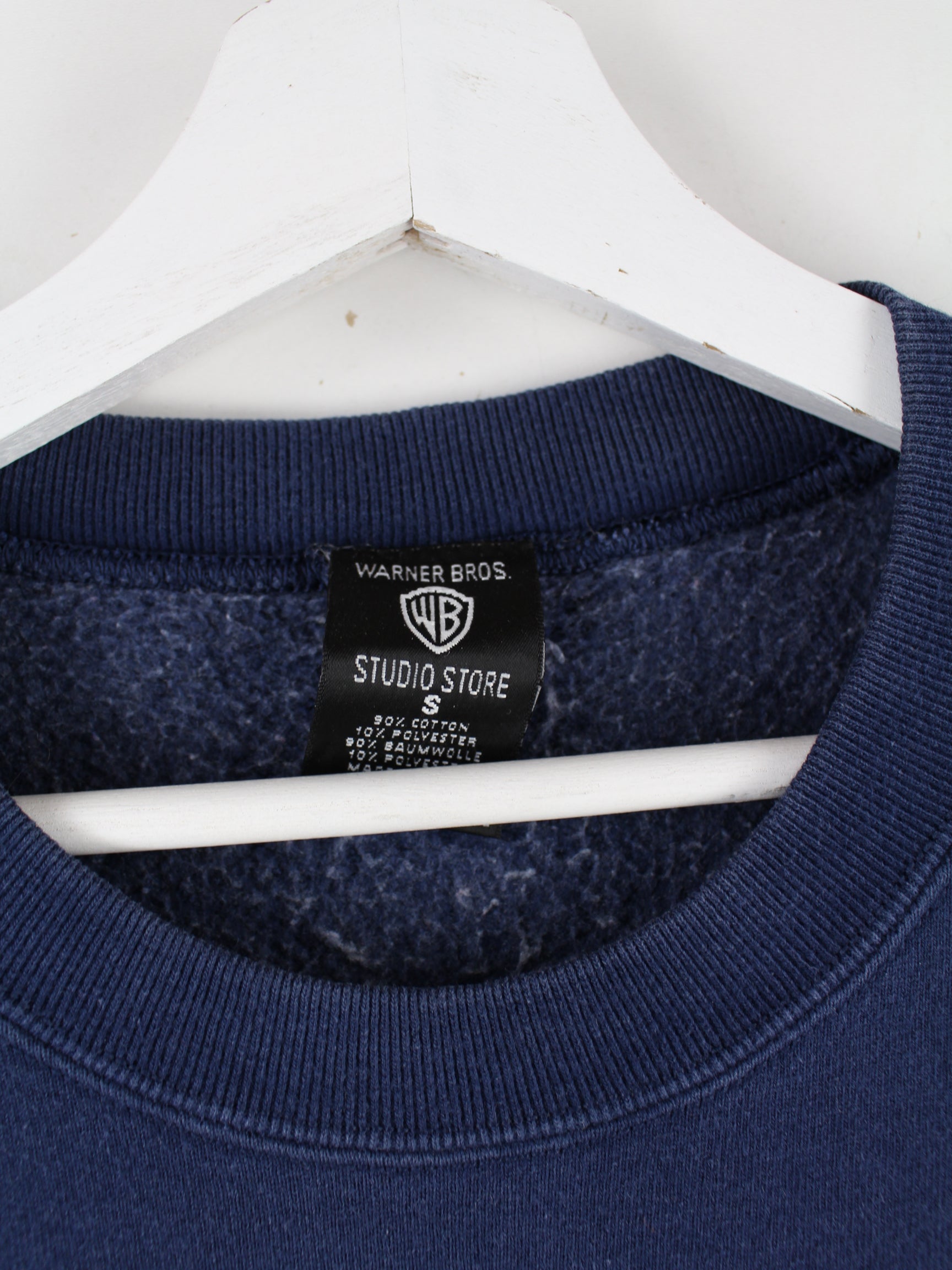 Sweater des Labels Warner Bros in Größe S aus den 90'ern. Er ist aus einer Baumwollmischung angefertigt und in Blau im Bestand. Mit seltenem Tunes Print.