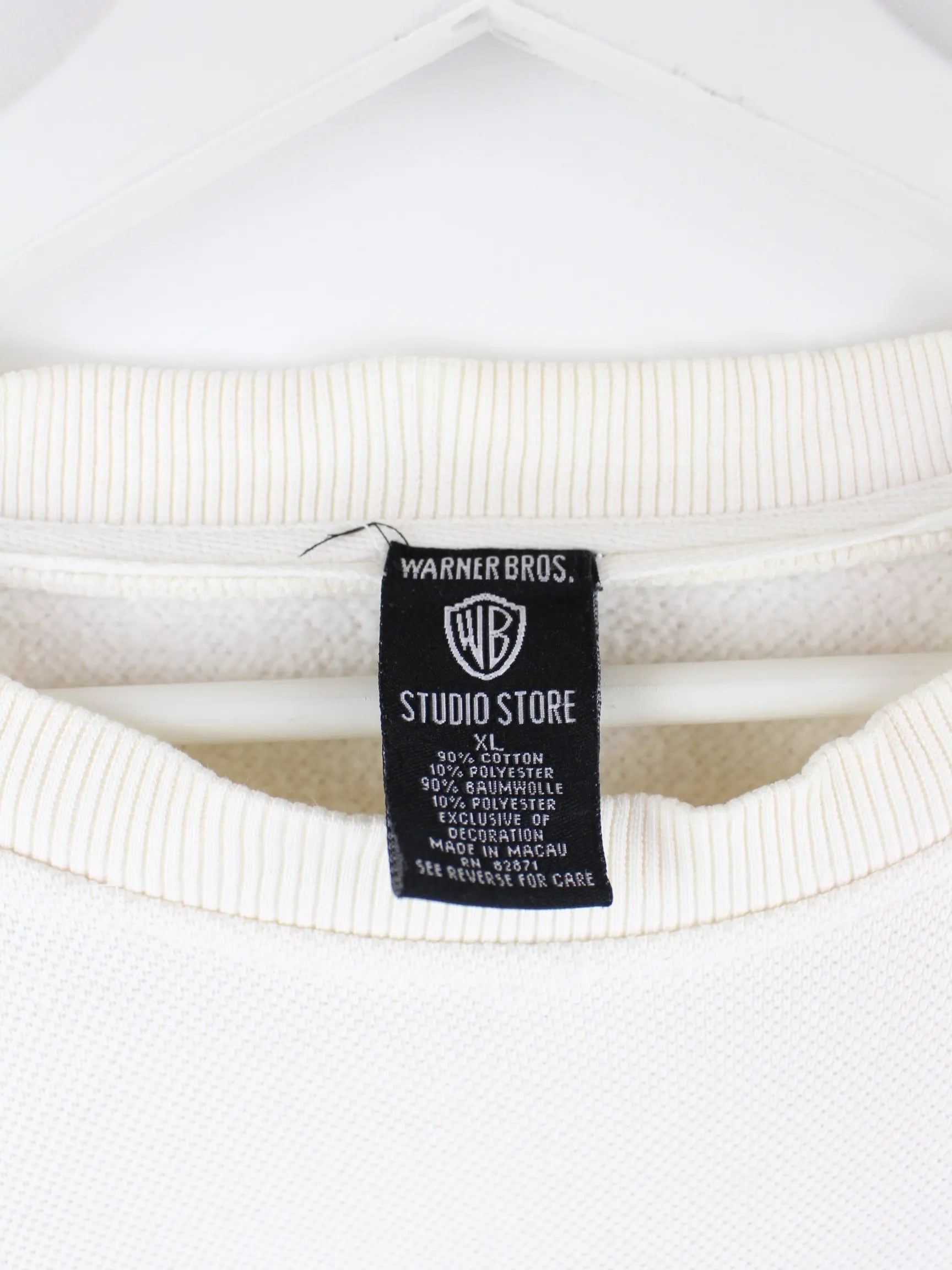 Sweater des Labels Warner Bros in Größe XL aus den 90'ern. Er ist aus einer Baumwollmischung produziert und in Weiß bei uns zu bekommen.