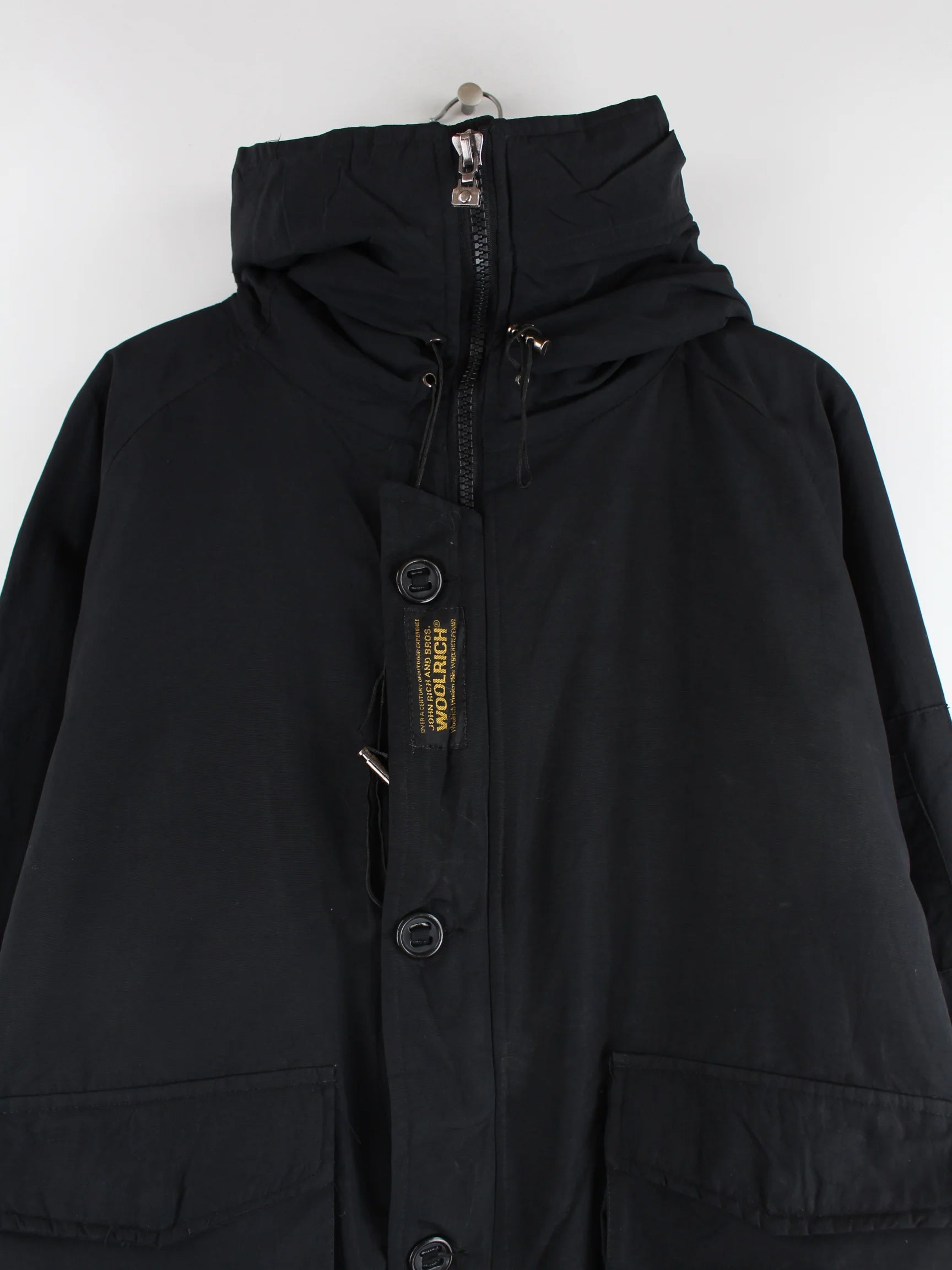 Schwarze Jacke aus dem Hause Woolrich in Größe XL. Sie ist aus Synthetik angefertigt und in gutem Zustand bei uns zu bekommen.
