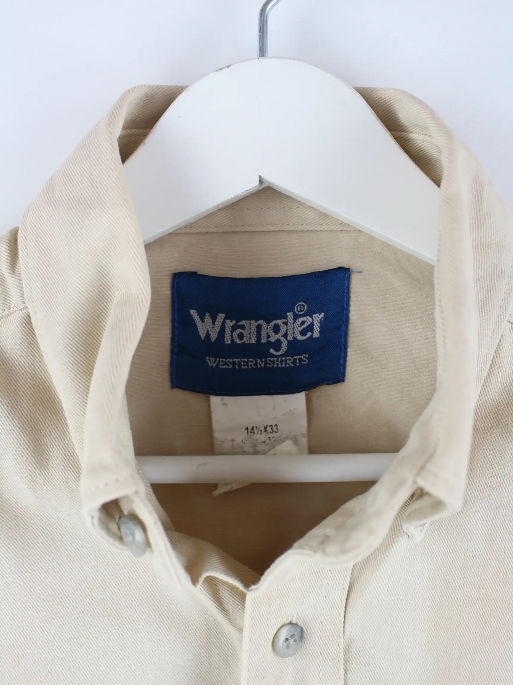 Beigefarbenes Freizeit Hemd der Brand Wrangler aus den 90'ern in Größe M. Es ist aus Baumwolle angefertigt und in gutem Zustand auf Lager.
