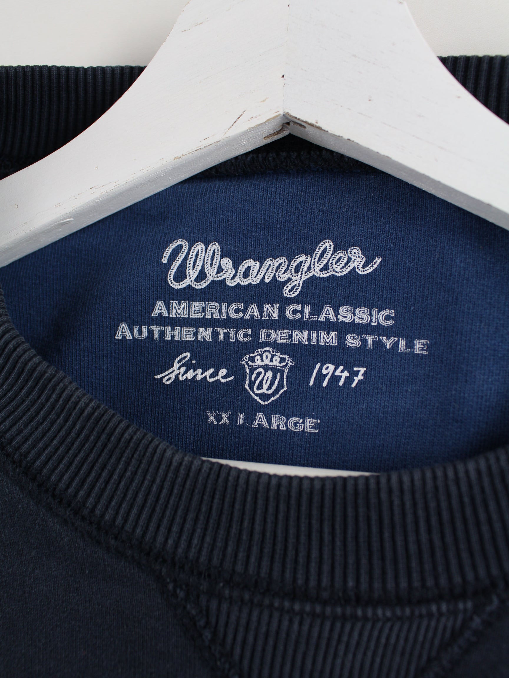 Sweater vom Brand Wrangler in Größe XXL. Er ist aus einer Baumwollmischung und in Blau bei uns zu bekommen.