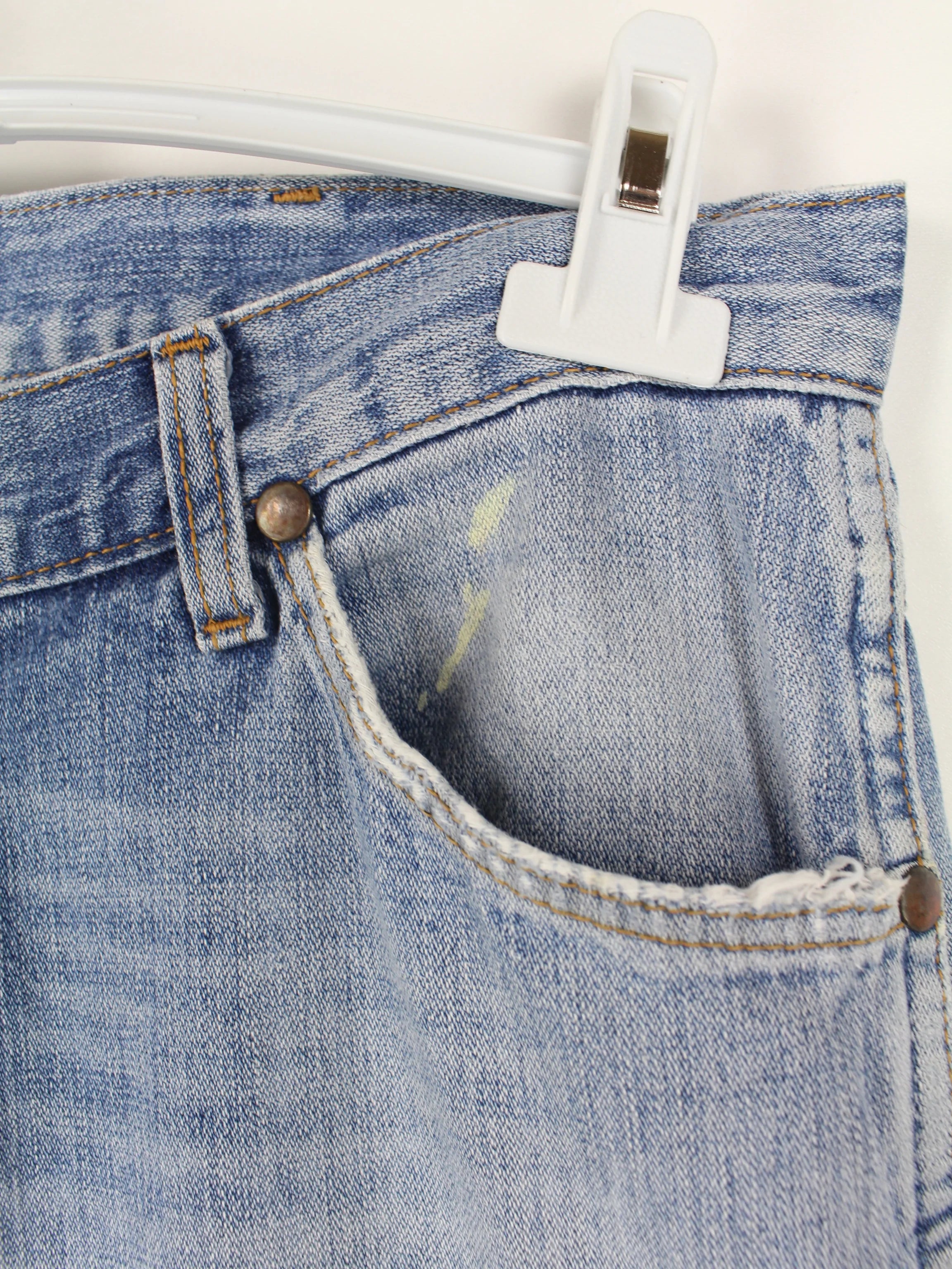 Defects: Paint stain on the pocket and the trousers have been shortened to an L30.
