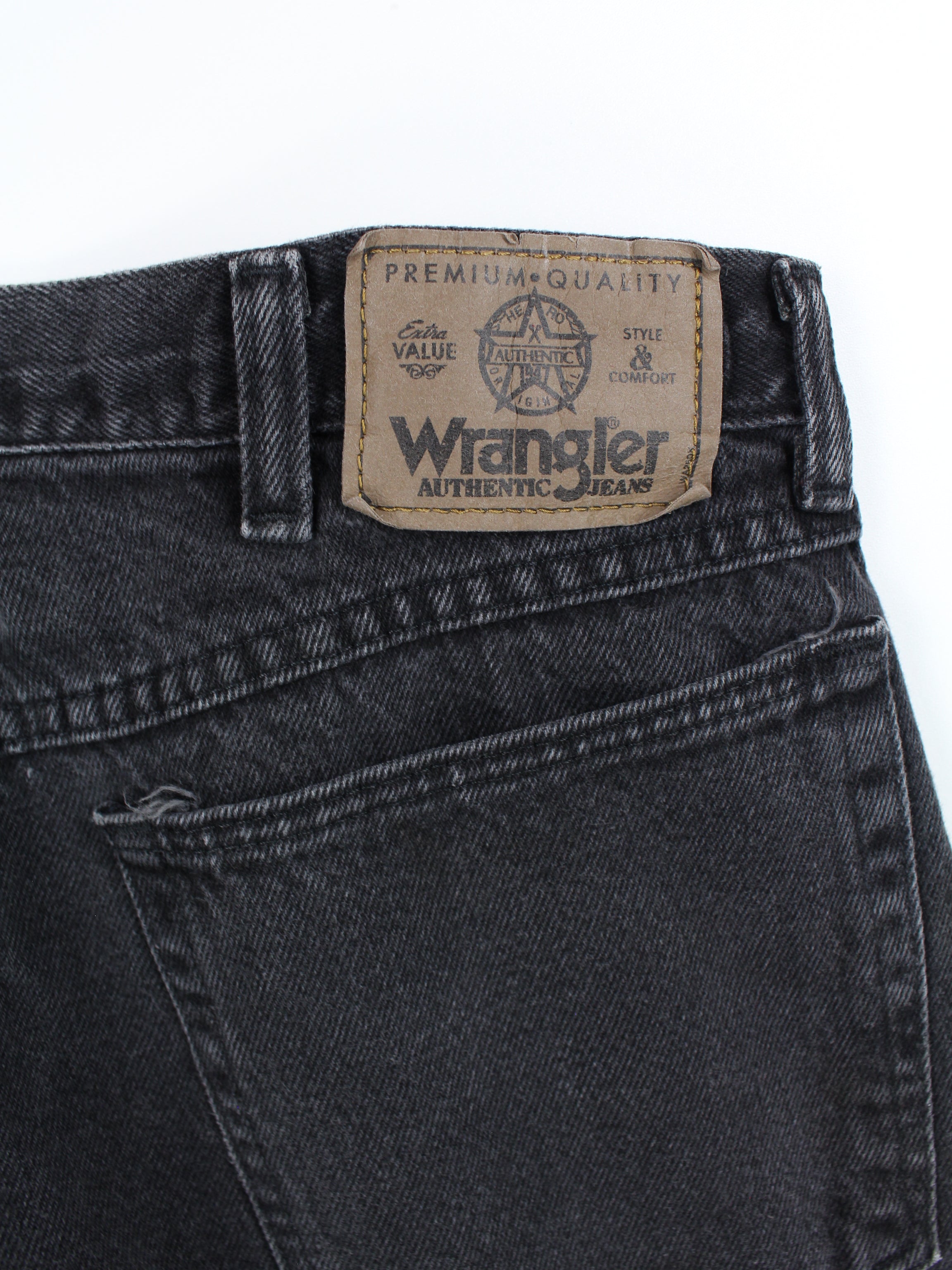 Black Wrangler jeans with a stylish wash.