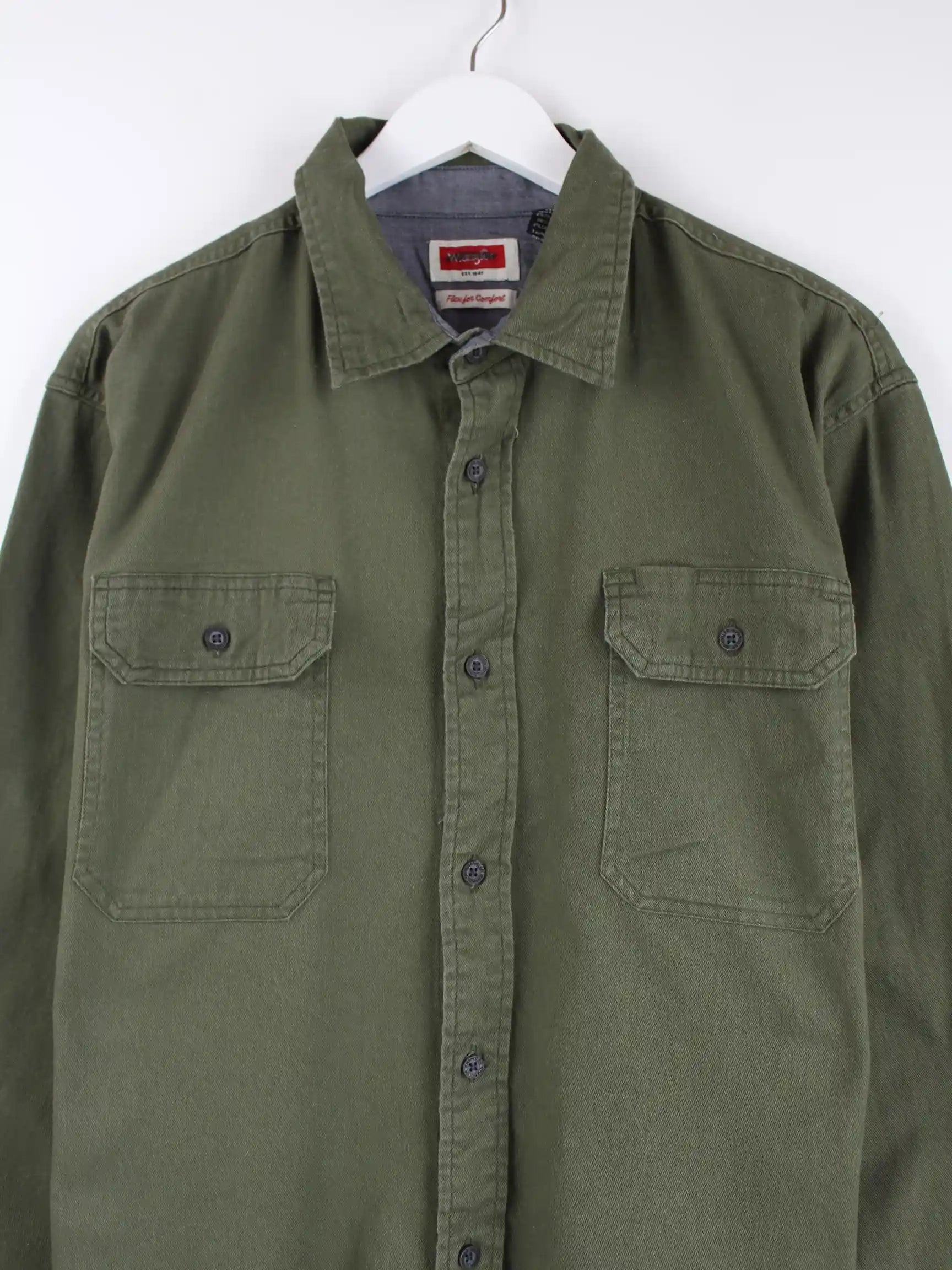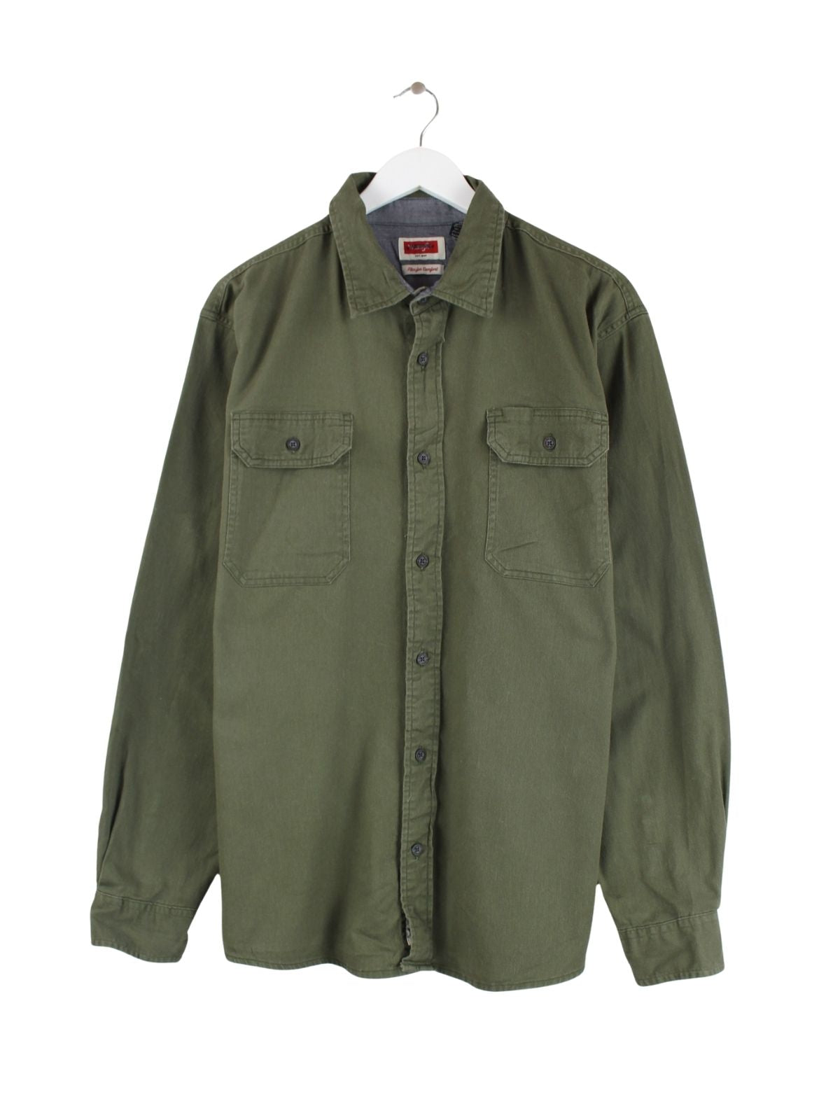 Grünes Freizeit Hemd aus dem Hause Wrangler in Größe L. Es ist aus Baumwolle hergestellt und in sehr gutem Zustand zu haben.