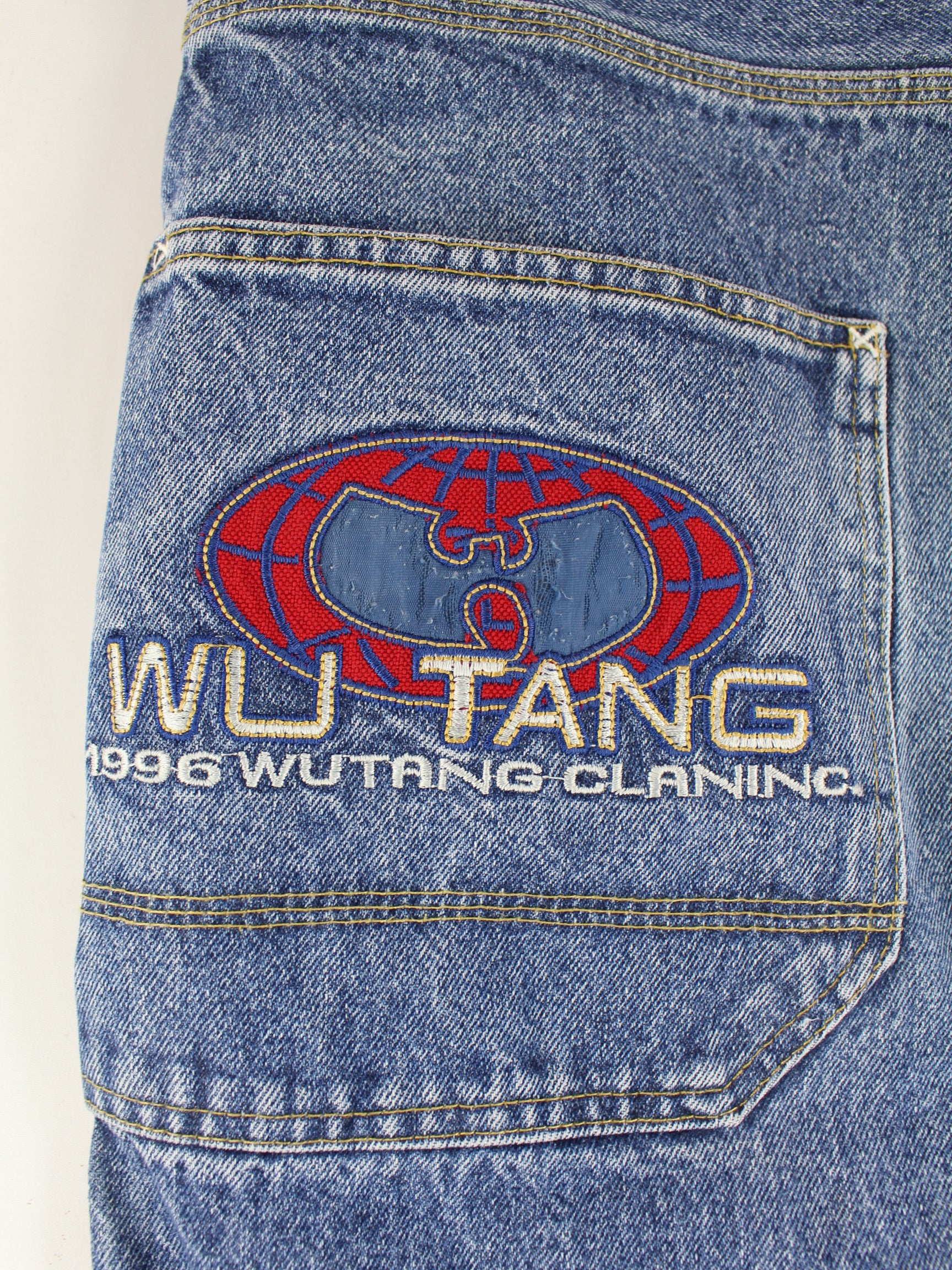 Wu Tang y2k Embroidered Baggy Denim Jeans Blue W38 L32