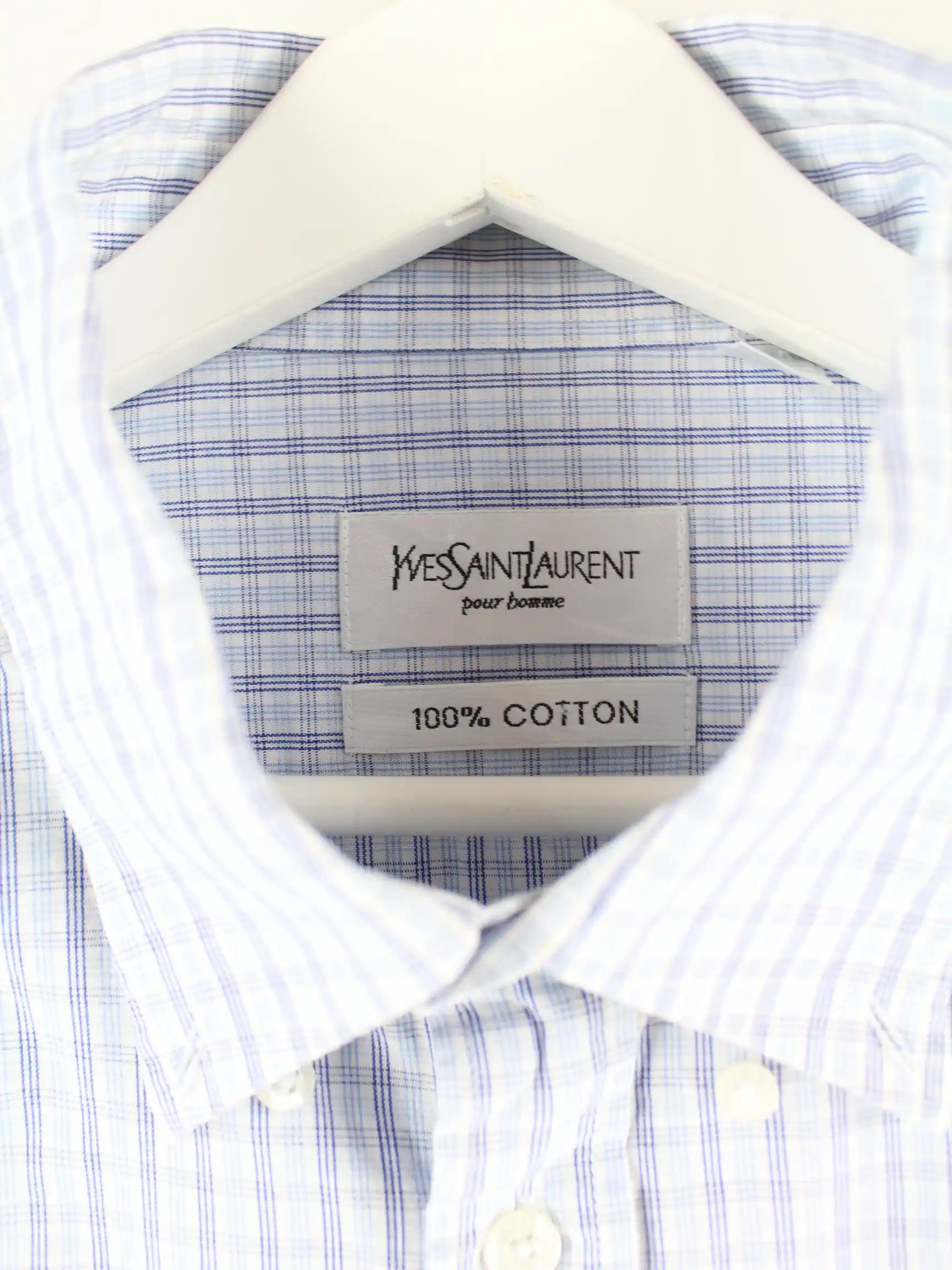 Blaues Hemd der Brand Yves Saint Laurent aus den 90'ern in Größe XL. Es ist aus Baumwolle gemacht und in sehr gutem Zustand zu bekommen.