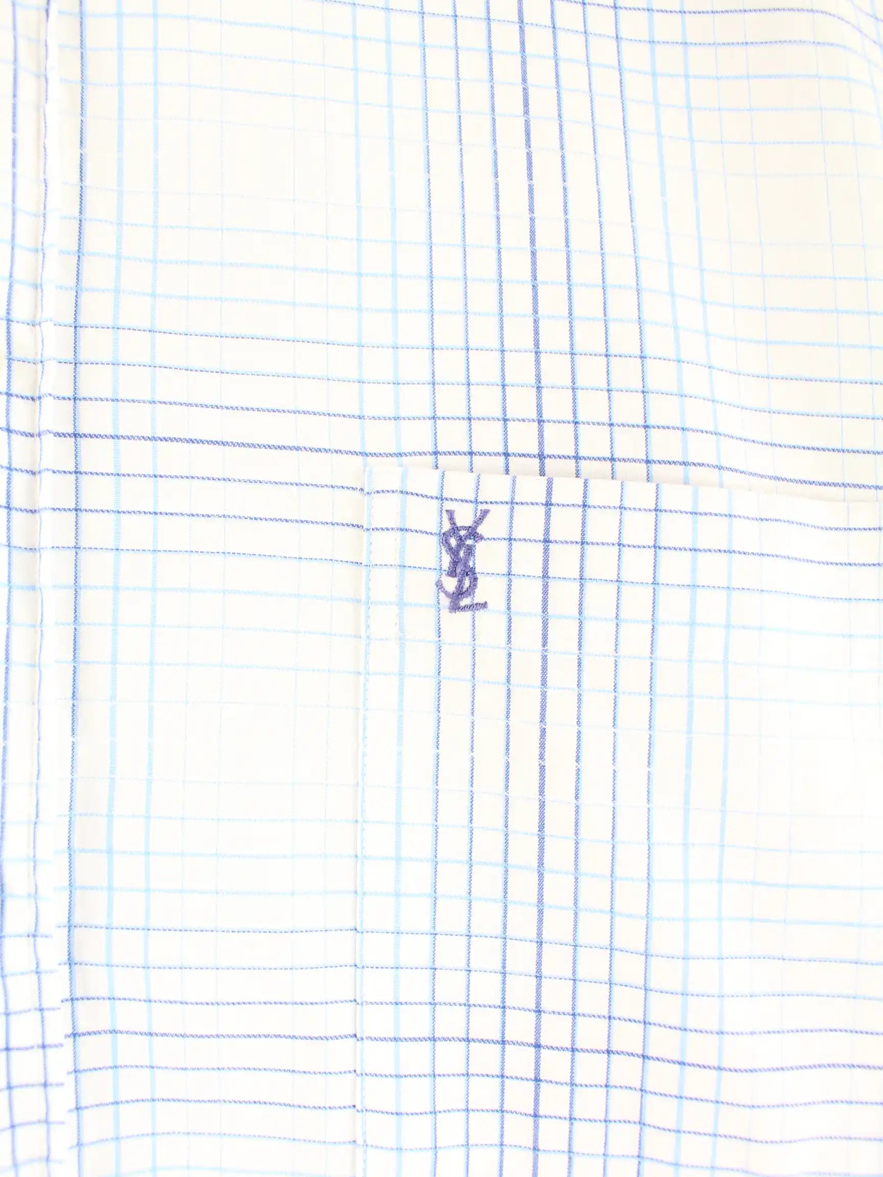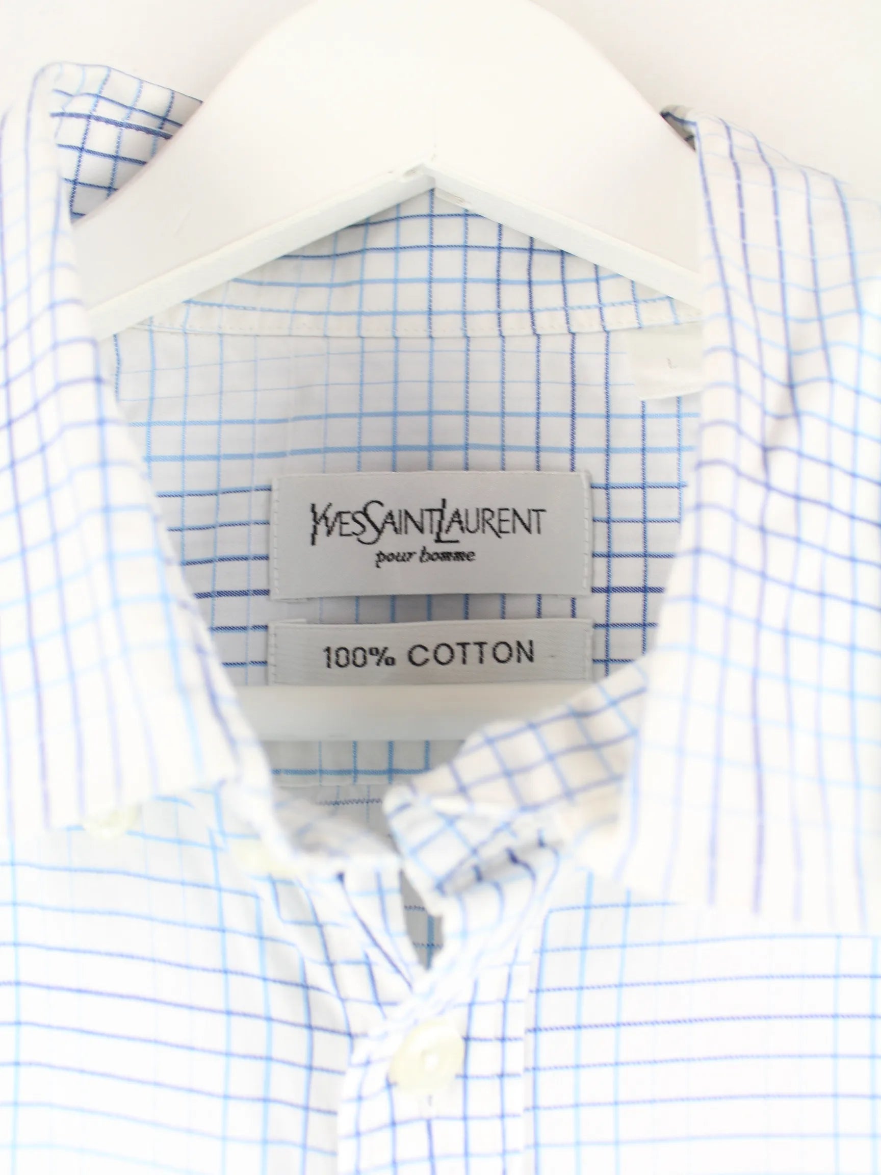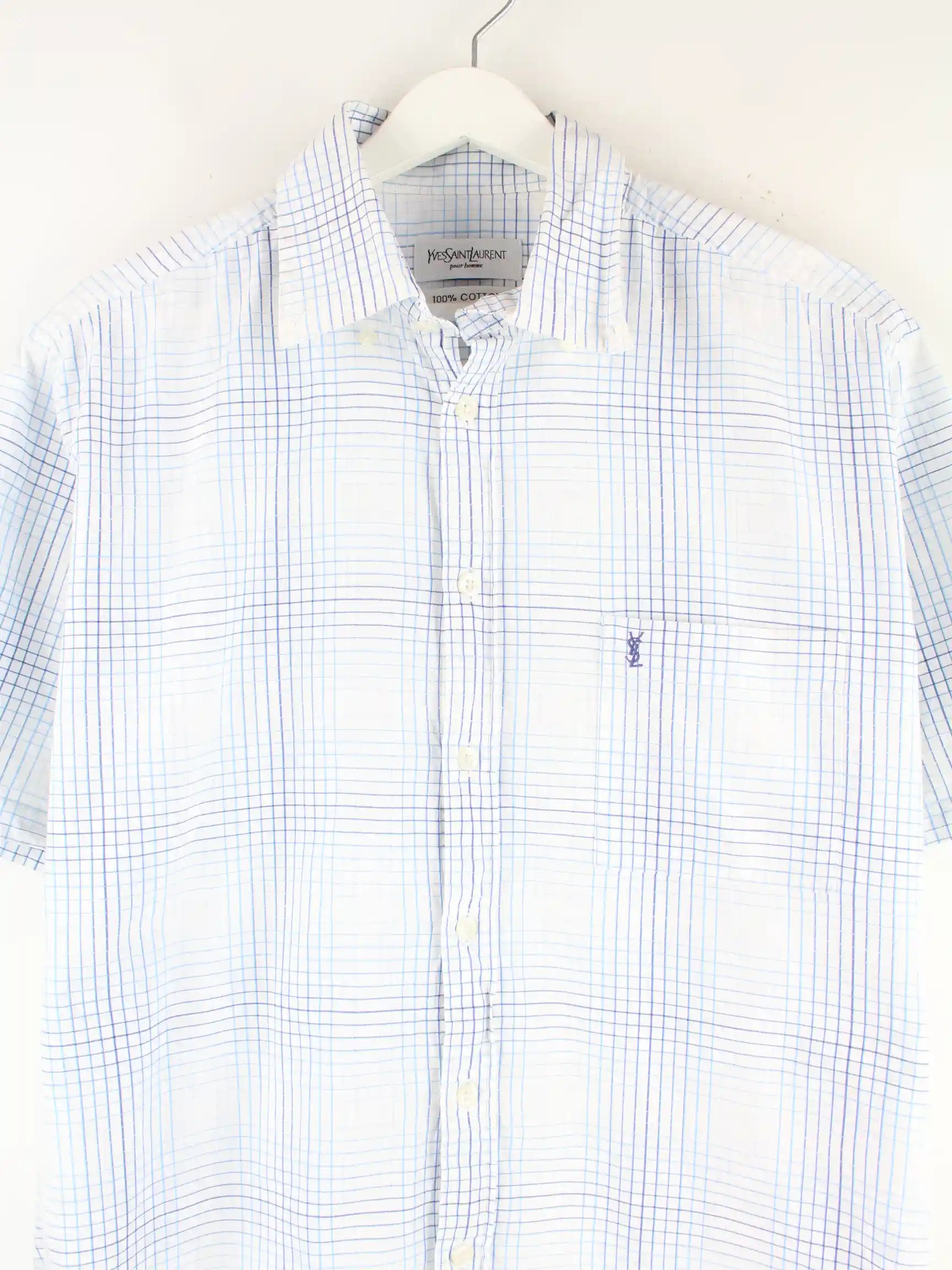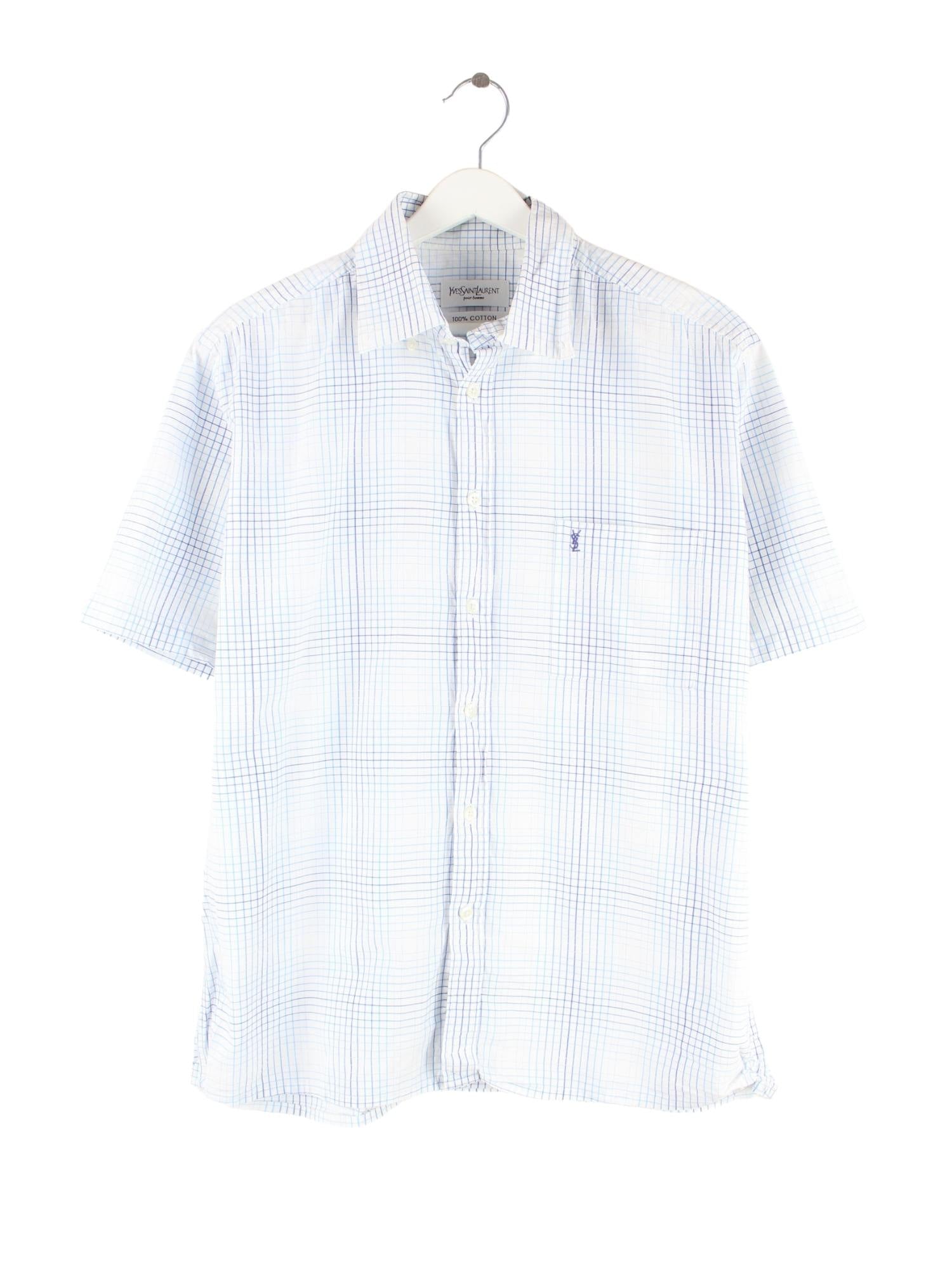 Weißes Freizeit Hemd der Marke Yves Saint Laurent aus den 90'ern in Größe L. Es ist aus Baumwolle hergestellt und in sehr gutem Zustand im Bestand.
